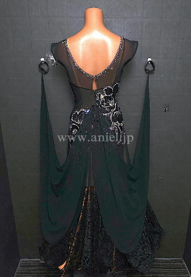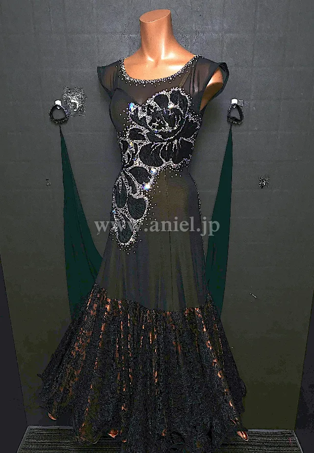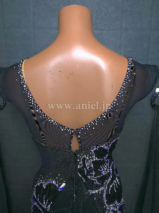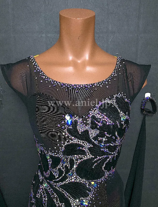 黒のボディにオーロラストーンの模様がとても美しい上品なドレスです。