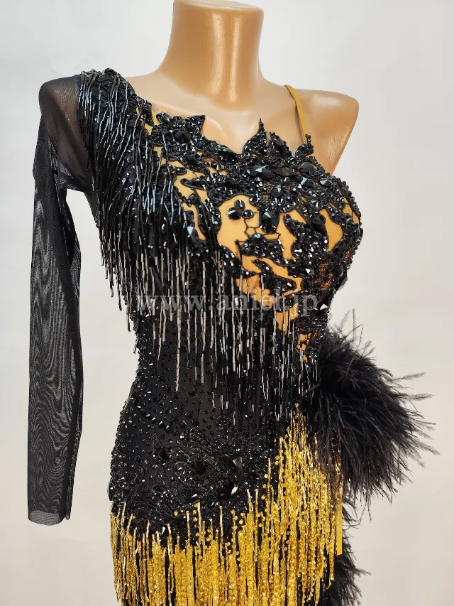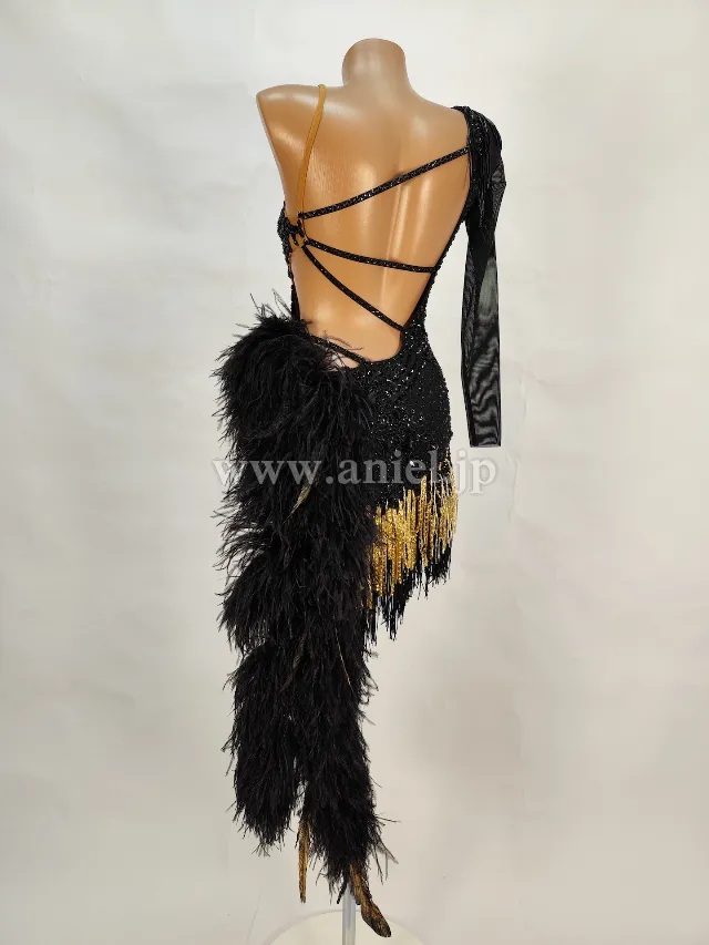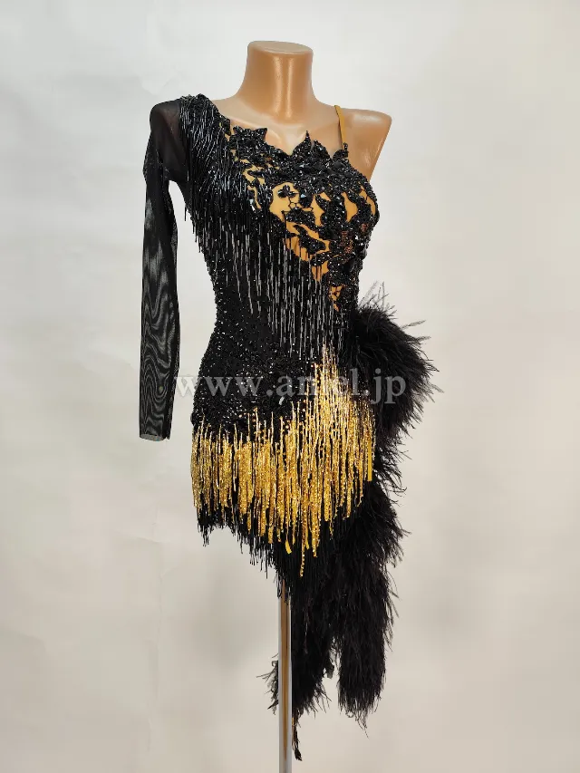 ブラックレースにビーズフリンジやストーンの装飾が煌びやかなドレスです。