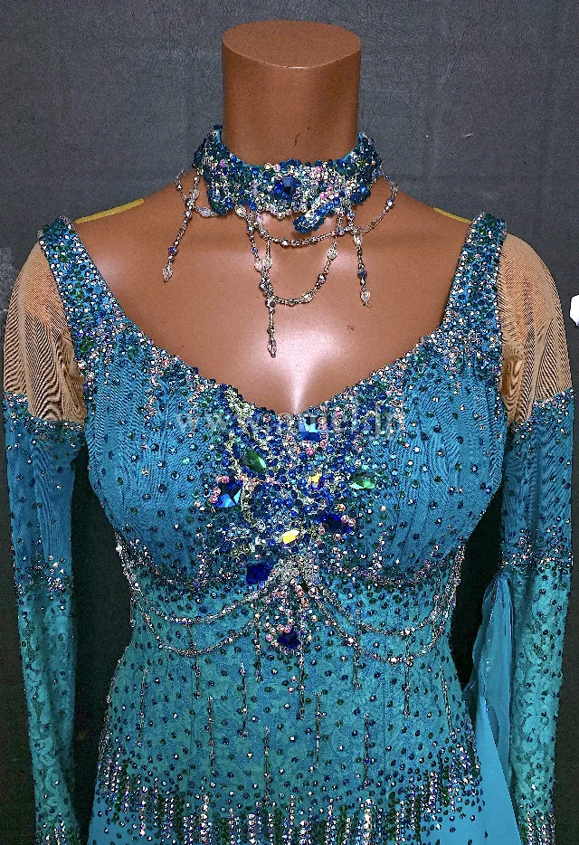 ボディはレース生地にストーンがたくさん美しく装飾されています。