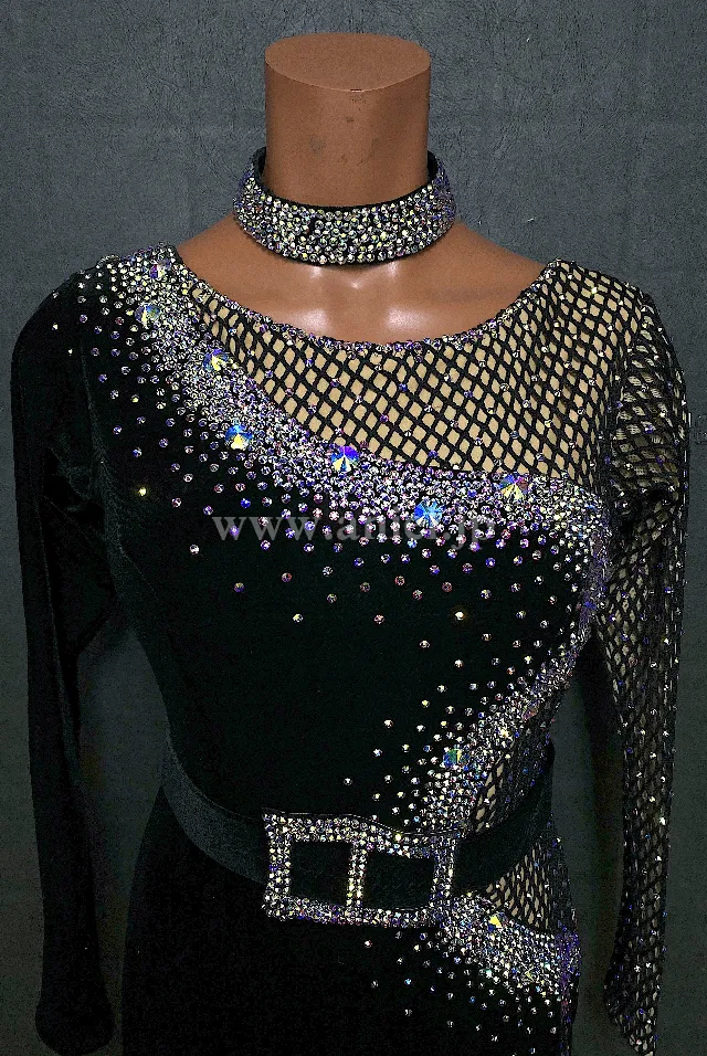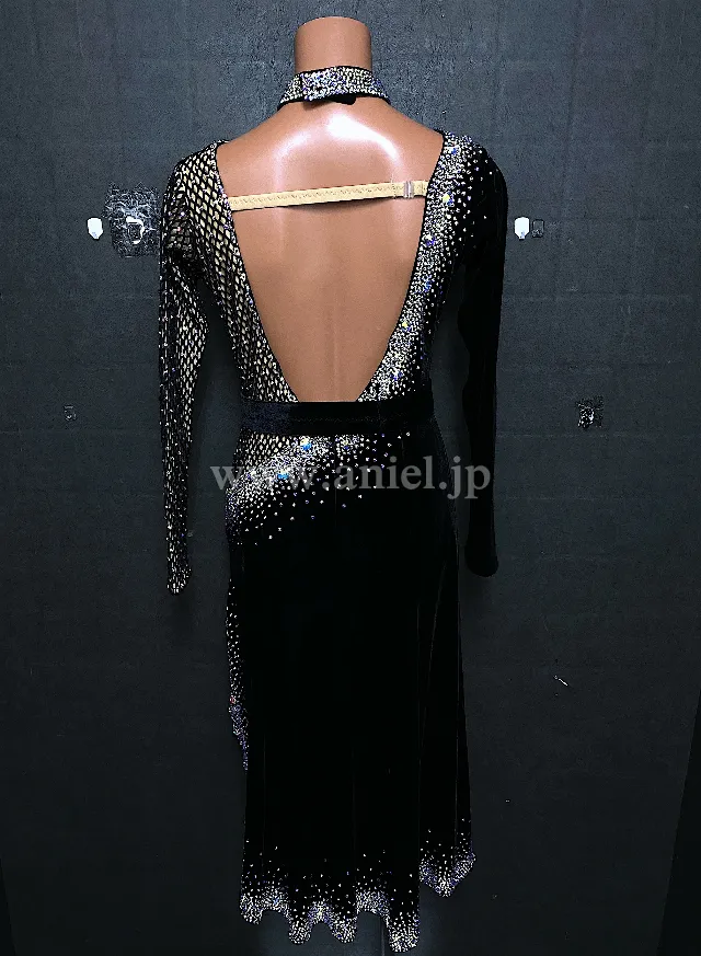 ベルベット生地にオーロラストーンがよく光るドレスです。