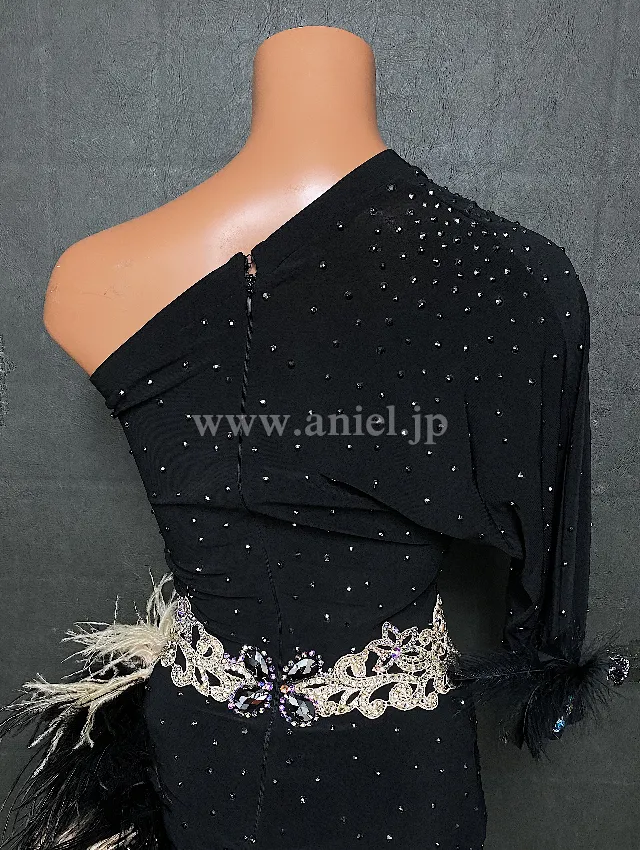 ウエスト周りはベルト風のモチーフレース飾りと大粒のストーンが装飾されています。