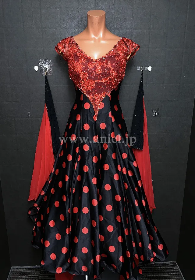 B488・【チャコット】赤&黒水玉