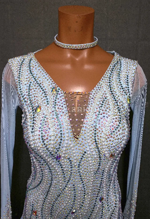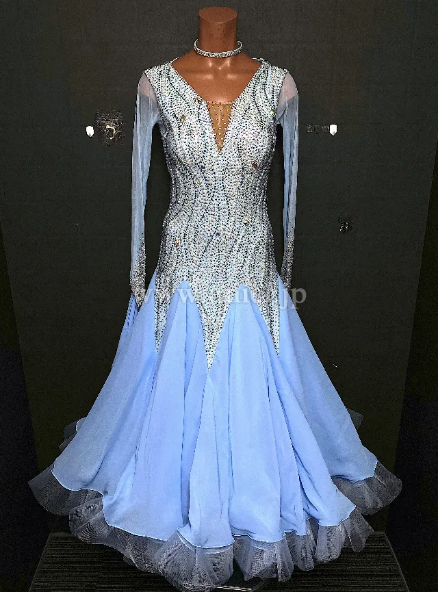 淡いペールブルーが美しいドレスです。