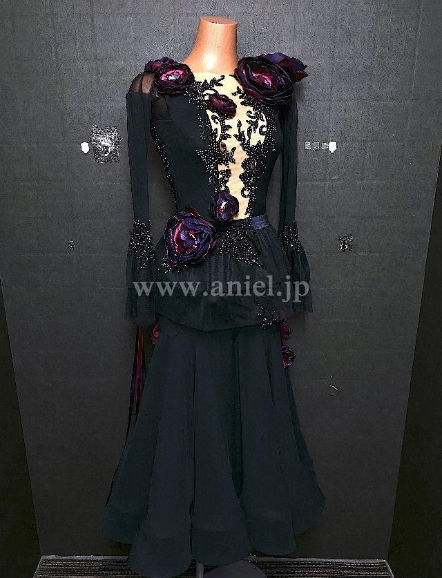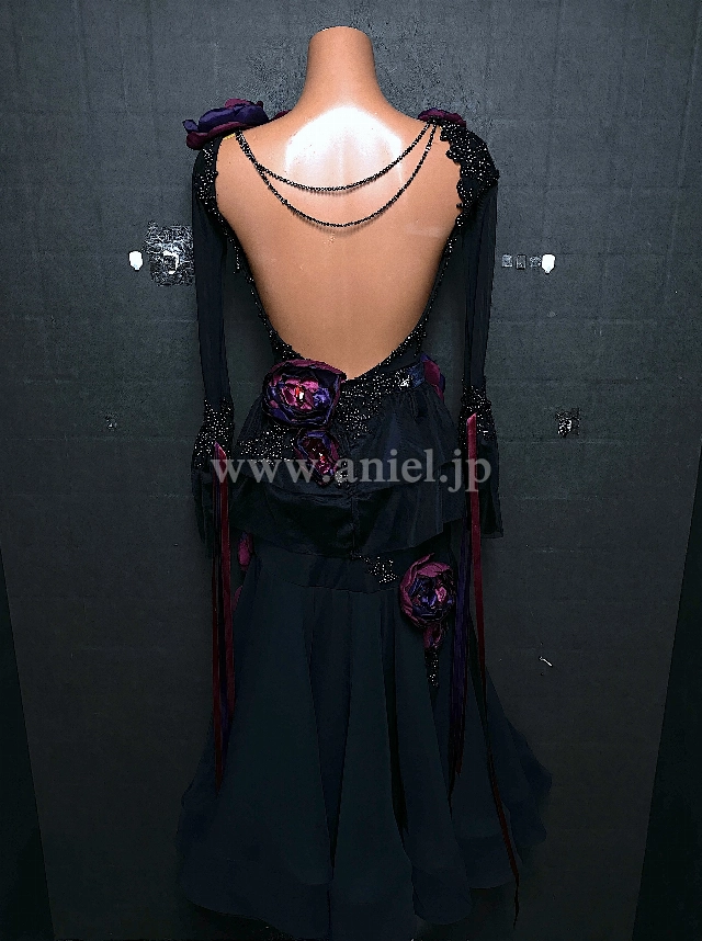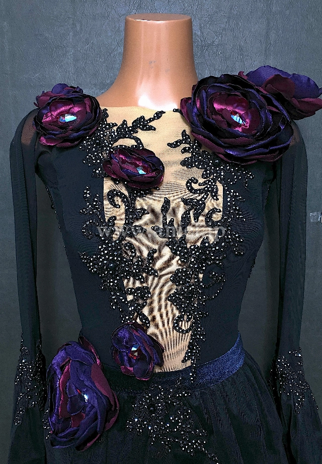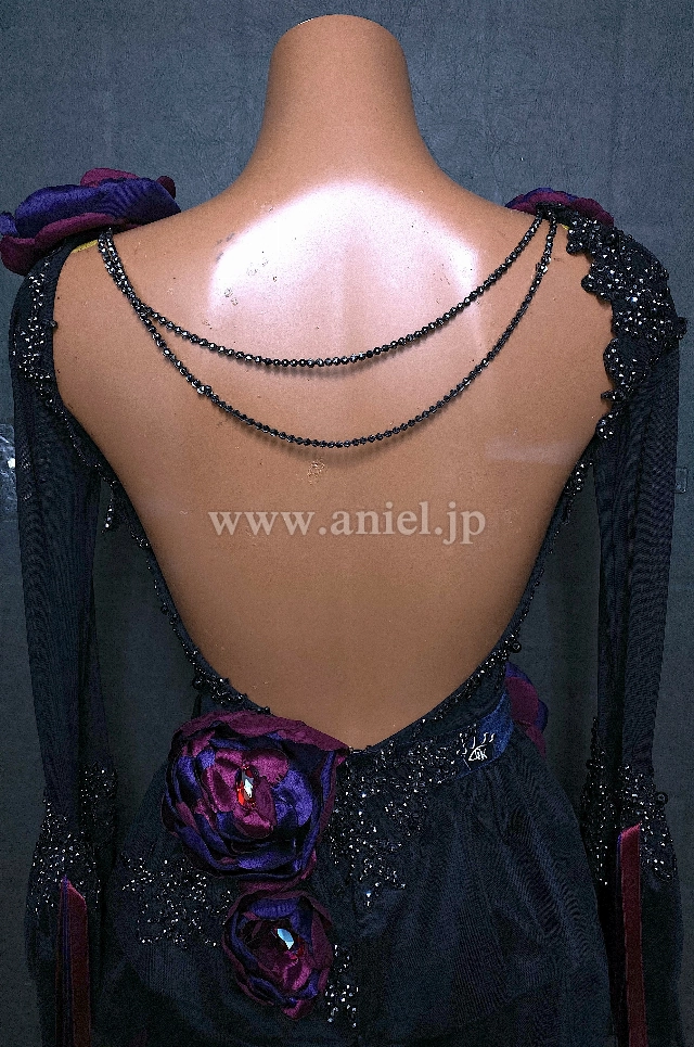 落ち着いた紫のカラーの立体フラワーがボディを彩ります。
