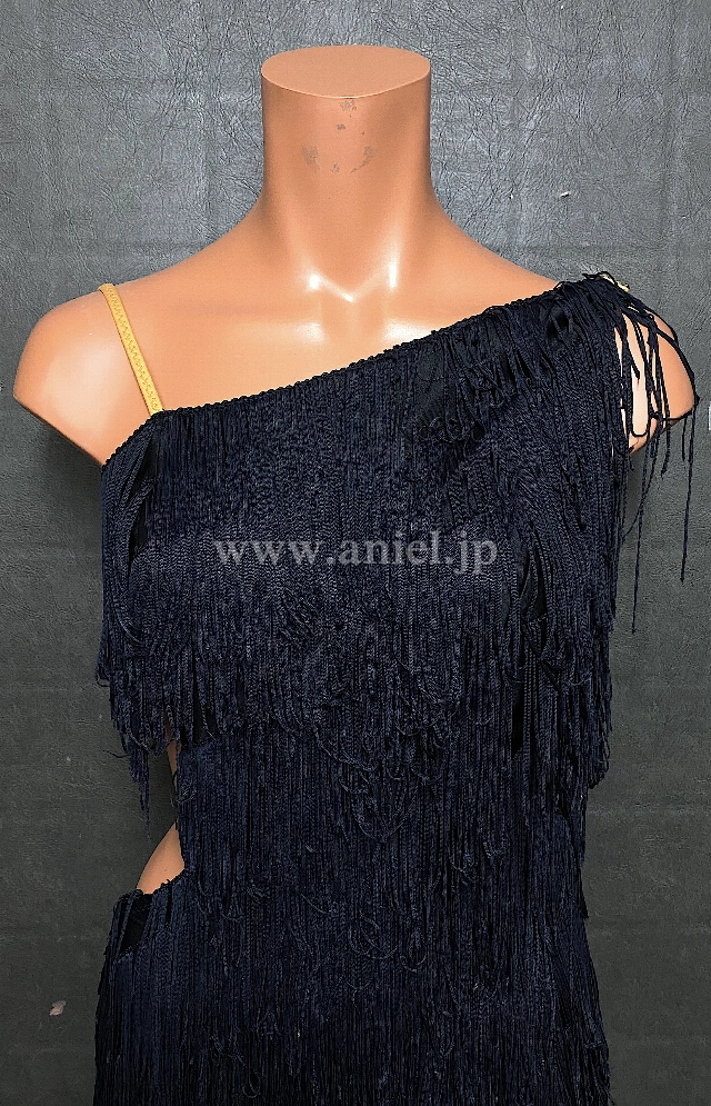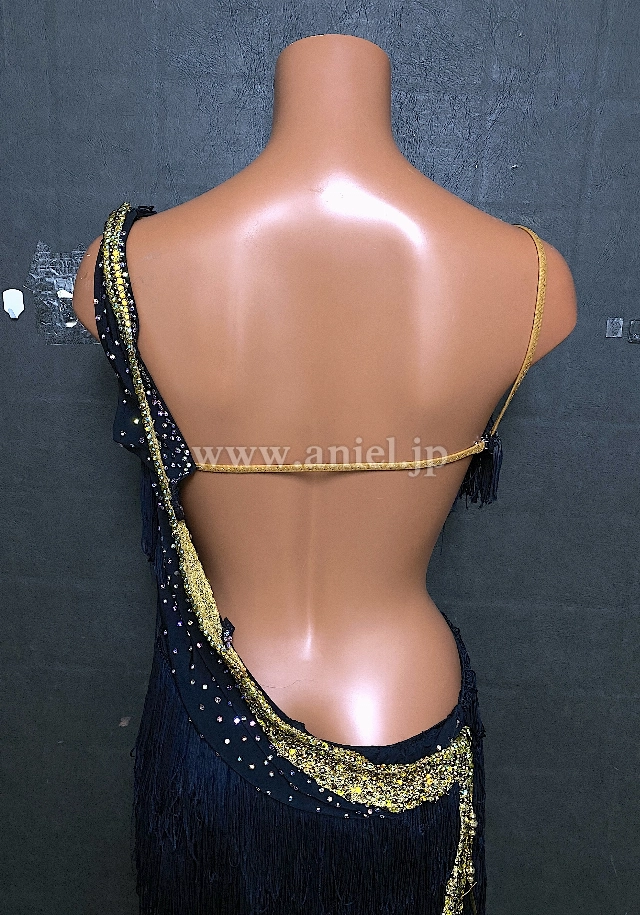 全身につけられたフリンジと背中のドレープが踊るドレスです。