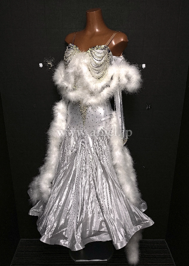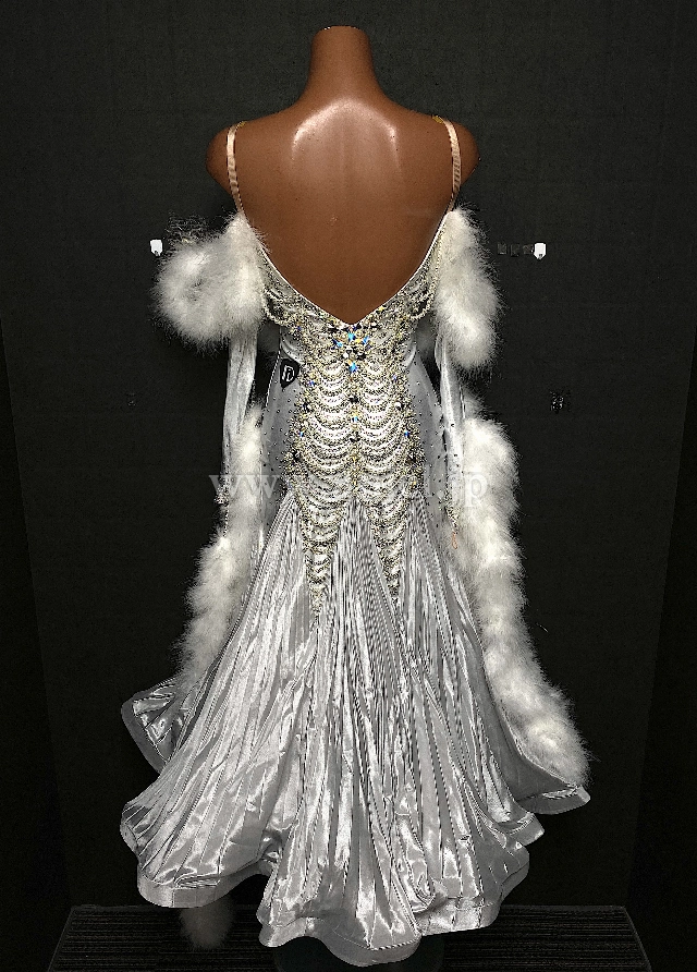 メタリックなシルバーの生地がとても素敵なドレス