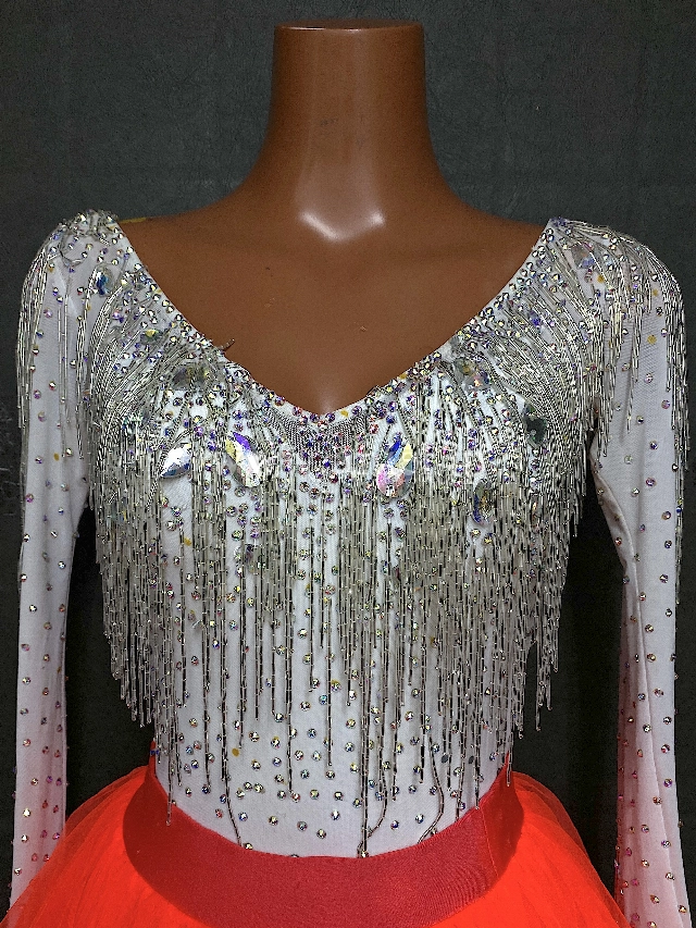 上半身はシルバーの竹ビーズが沢山付いています。