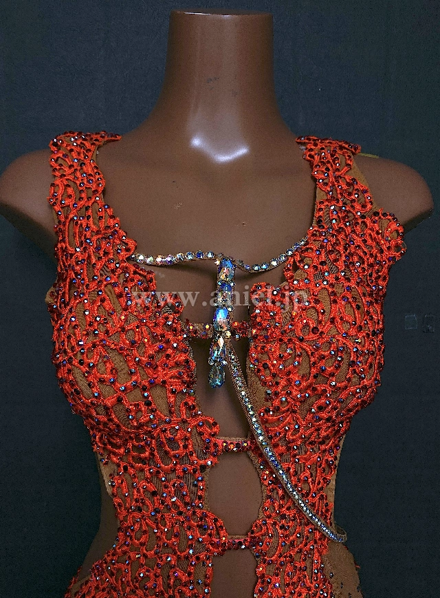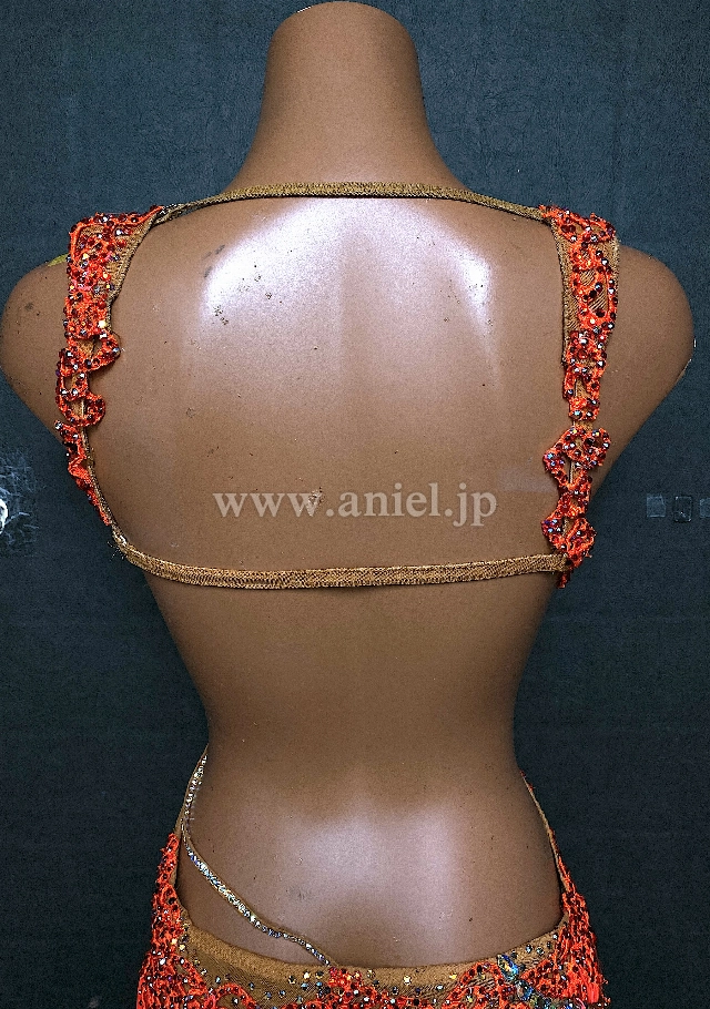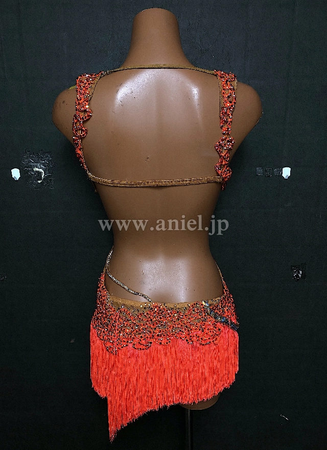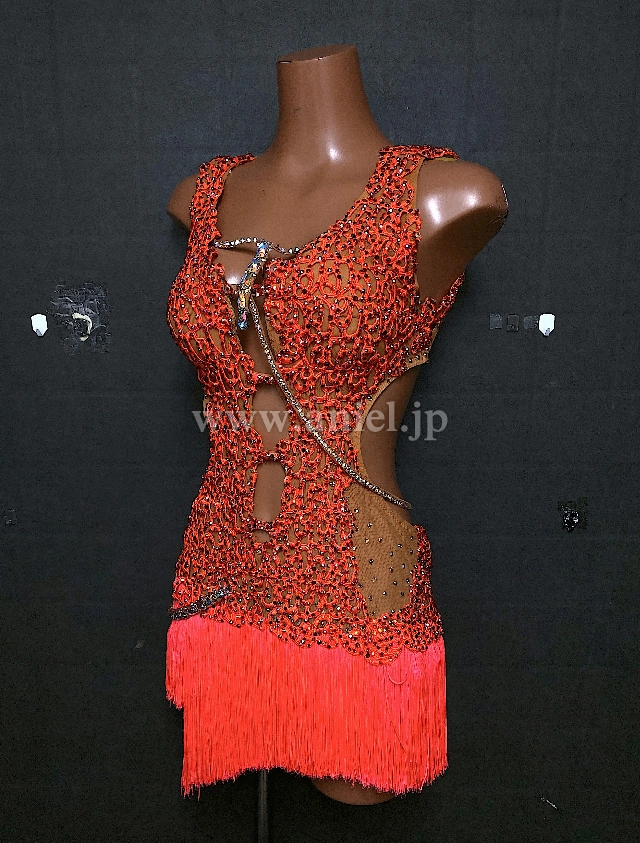 オレンジのミニ丈フリンジドレス