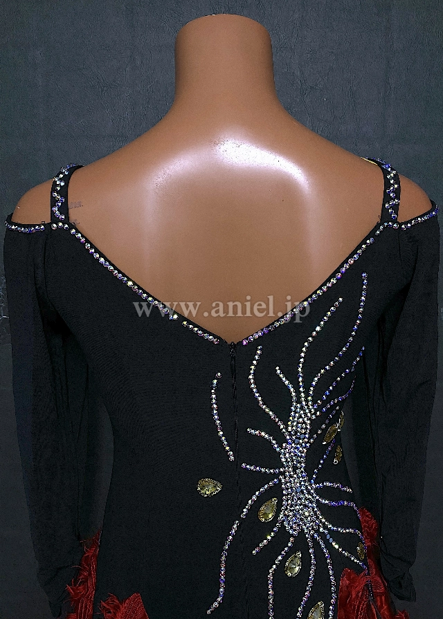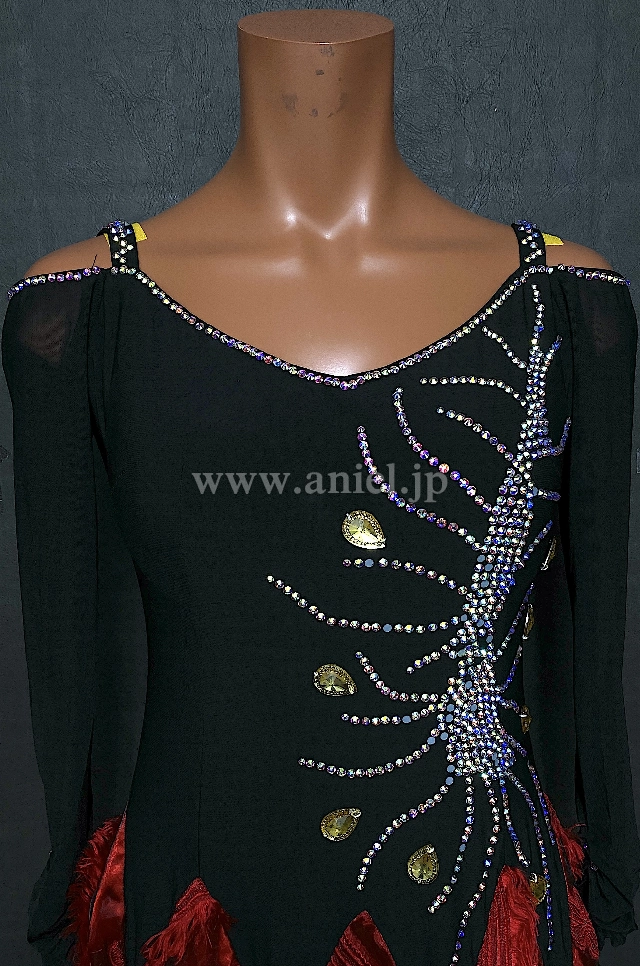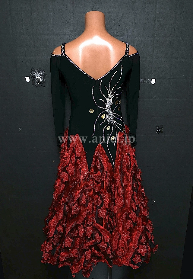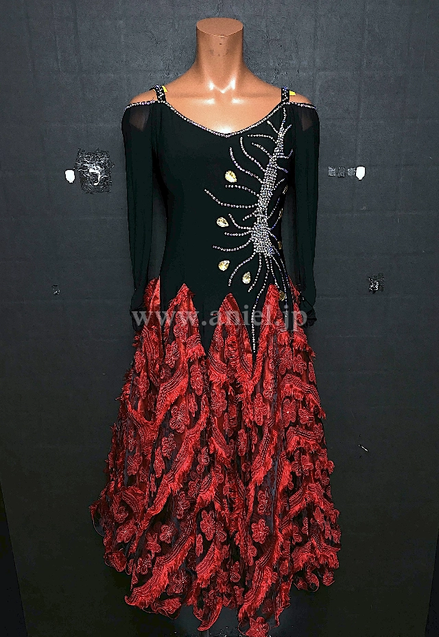黒のボディに赤のスカートが個性的なドレスです。