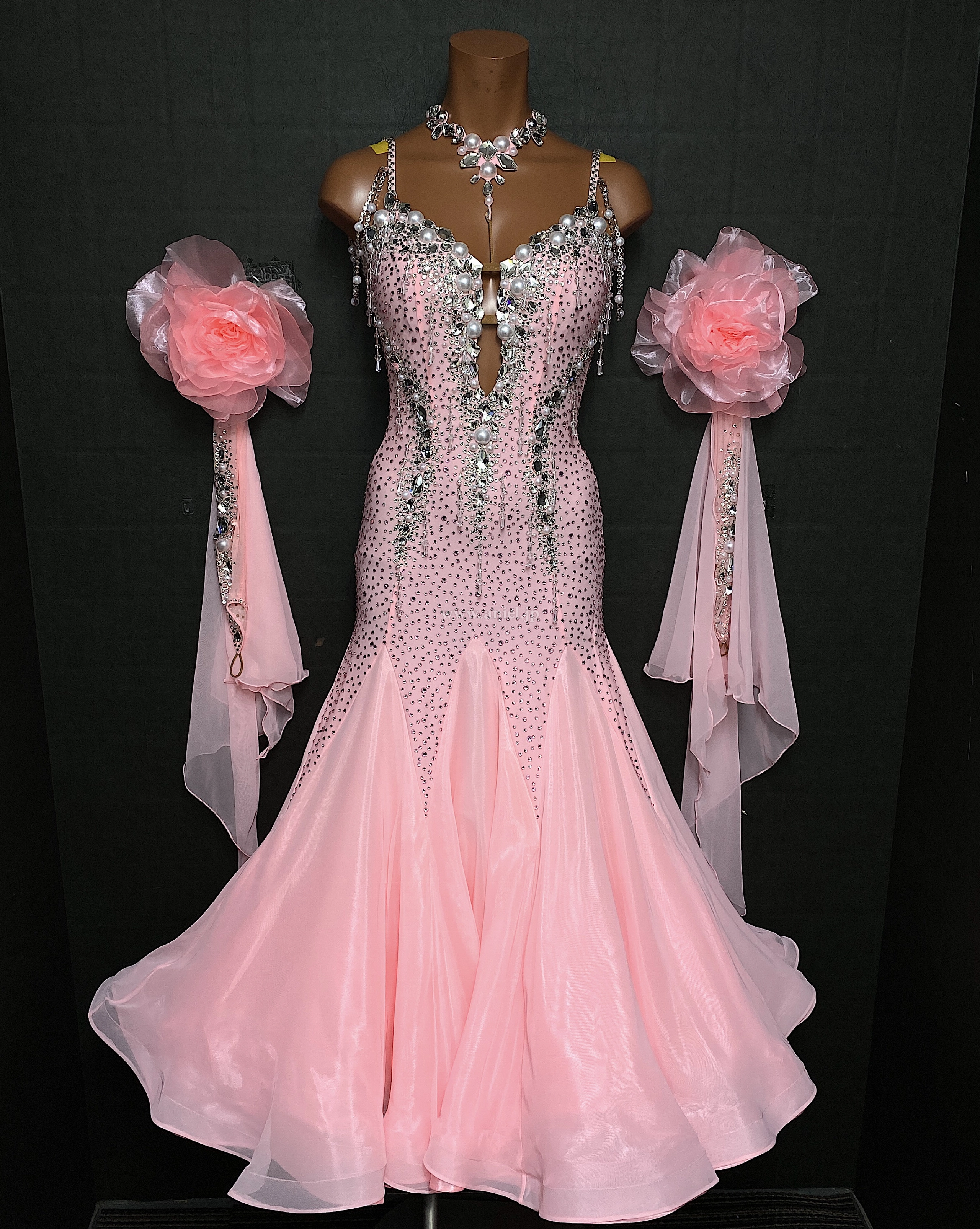 淡いピンクの可愛らしいドレスです。