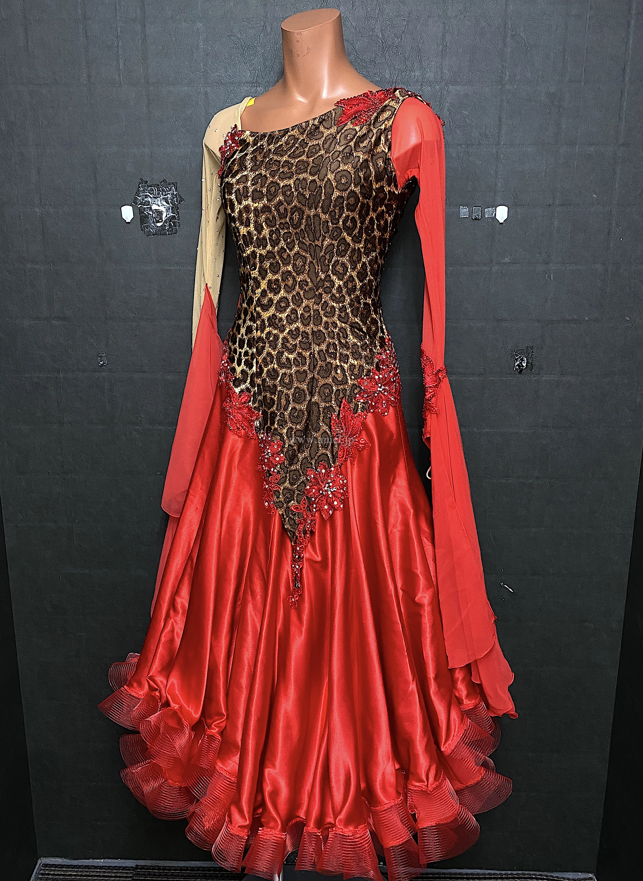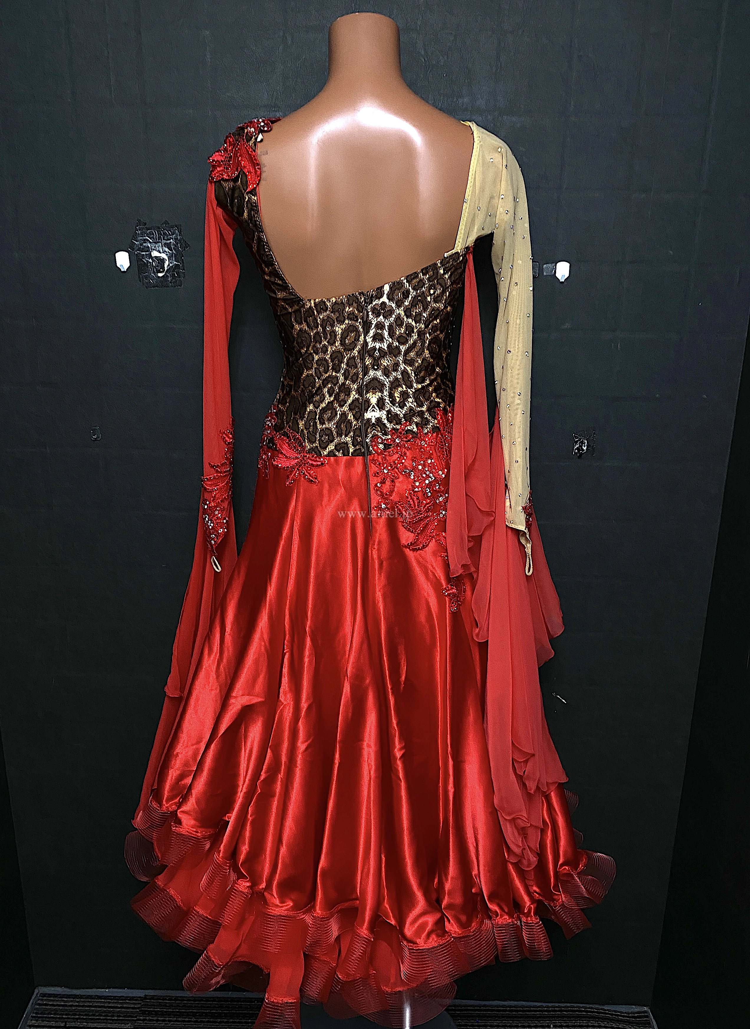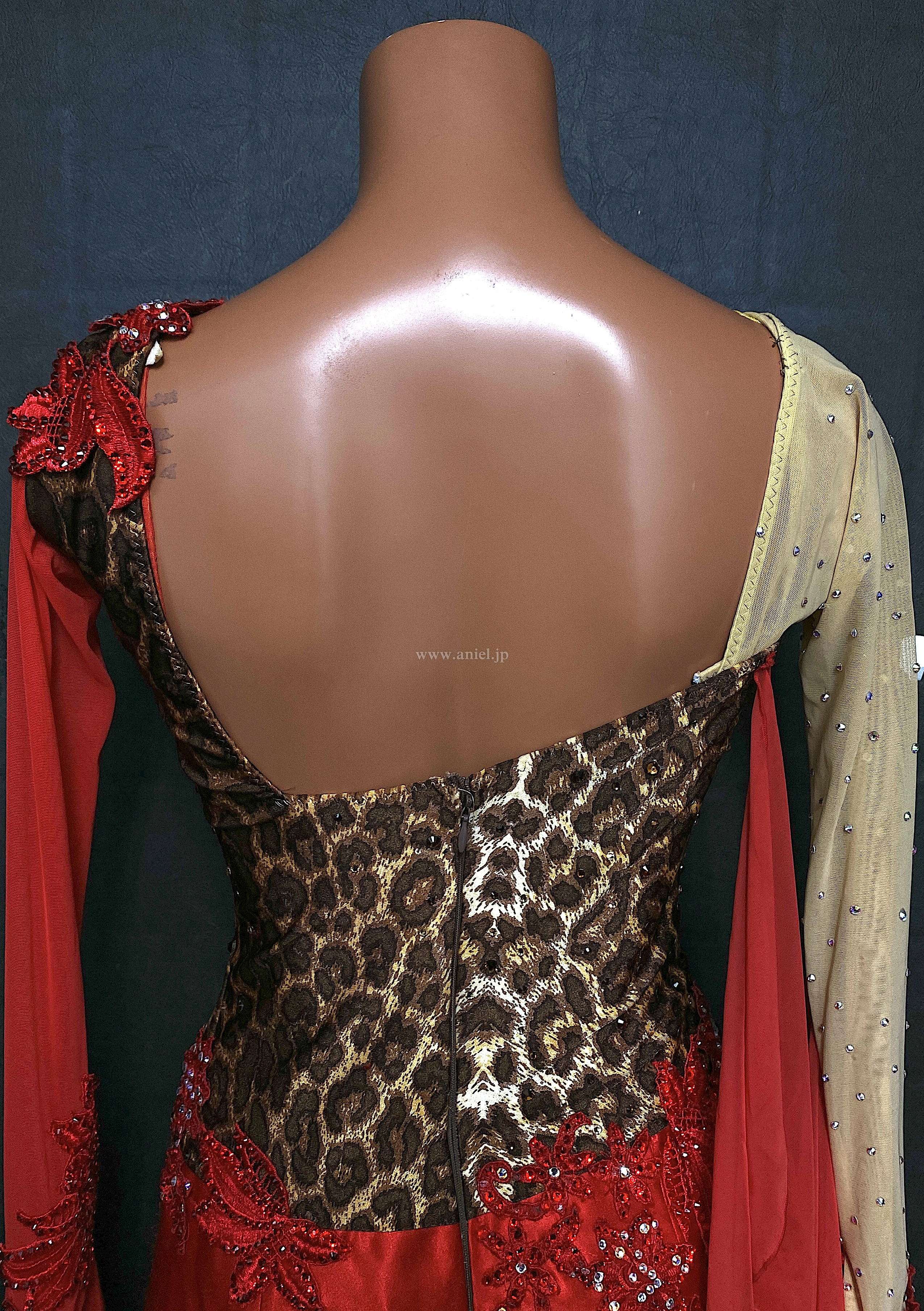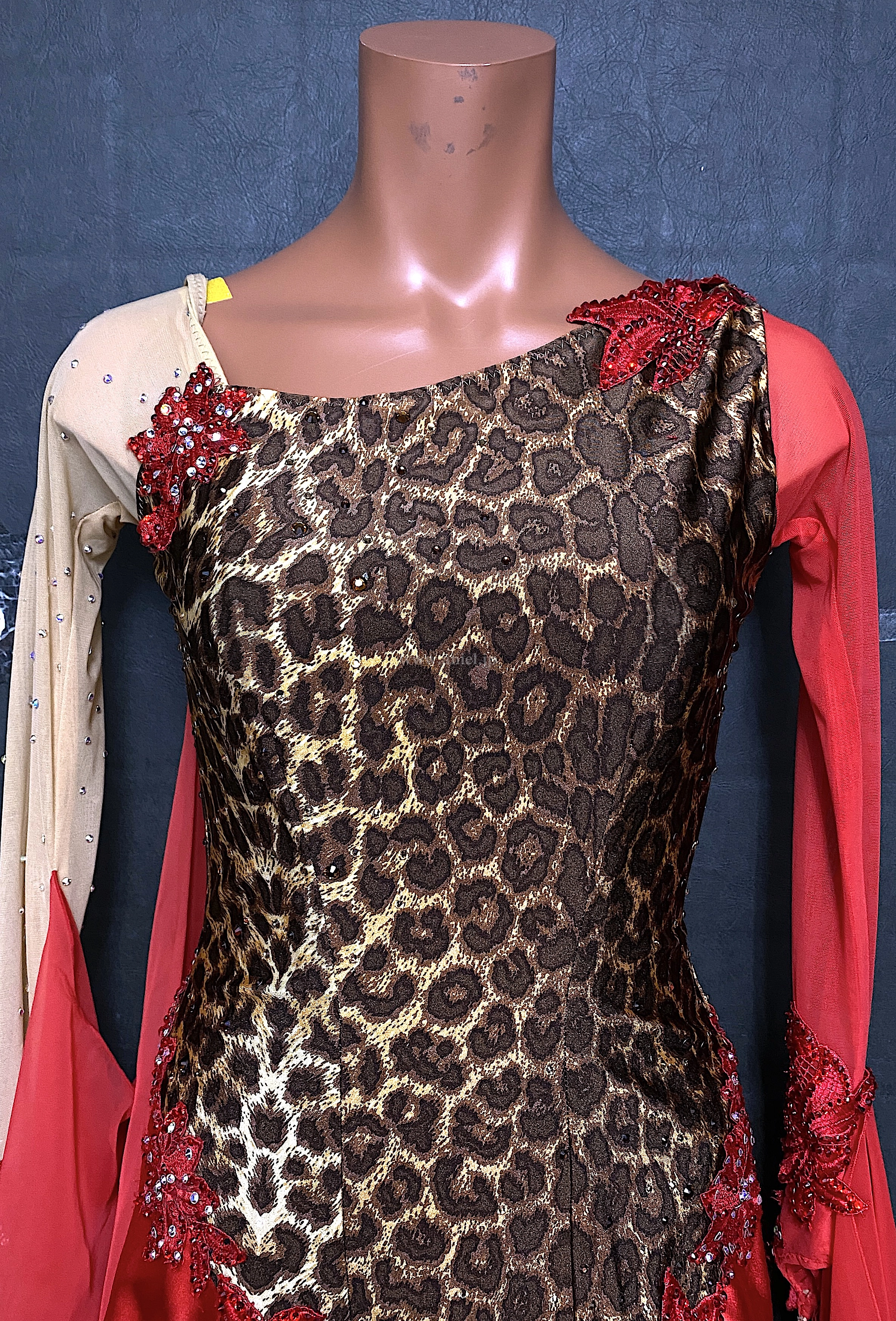 赤とヒョウ柄のアクティブなイメージのドレス