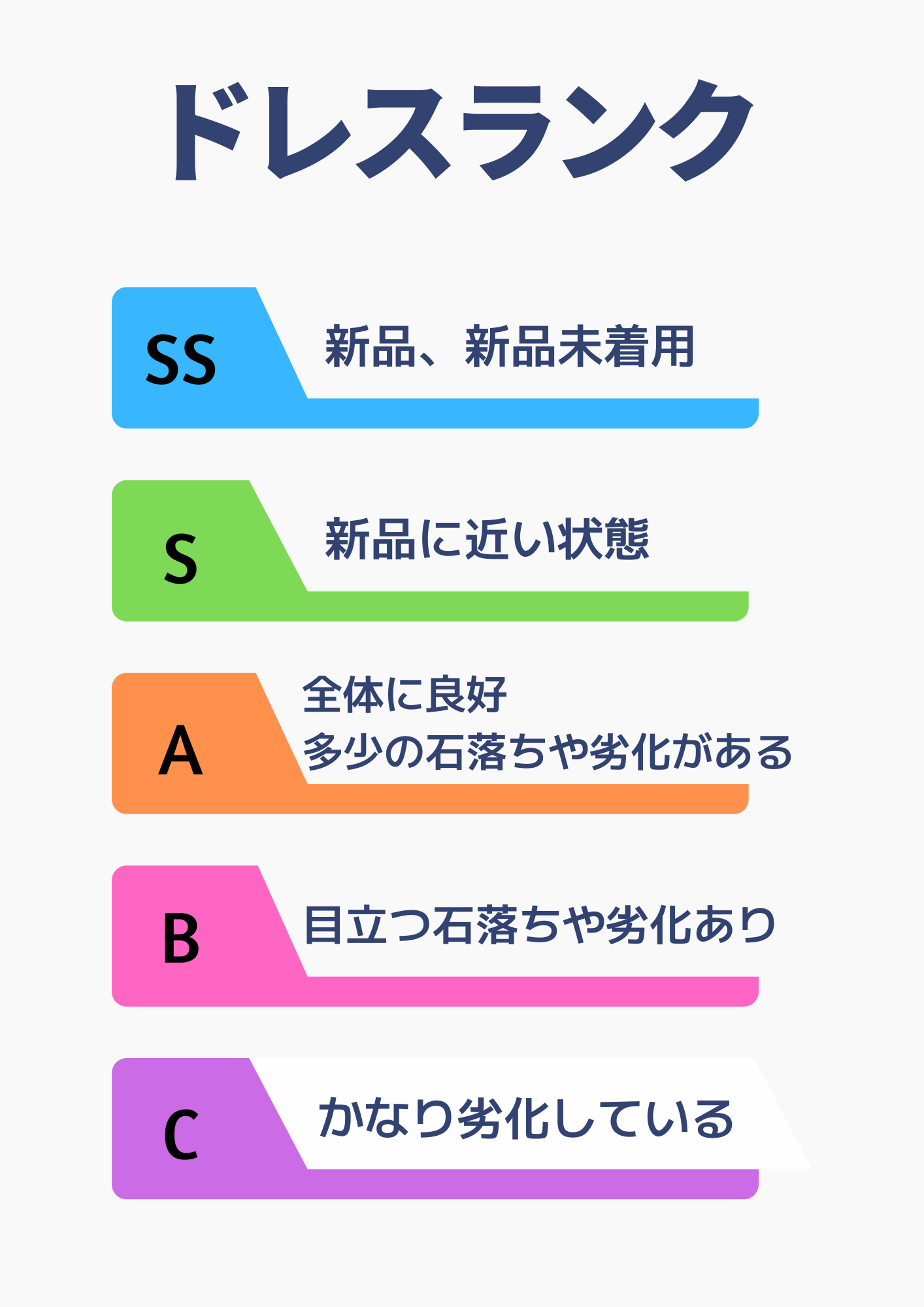 ドレスの状態についてランクを記載、その他特記事項ございましたらご記入ください。